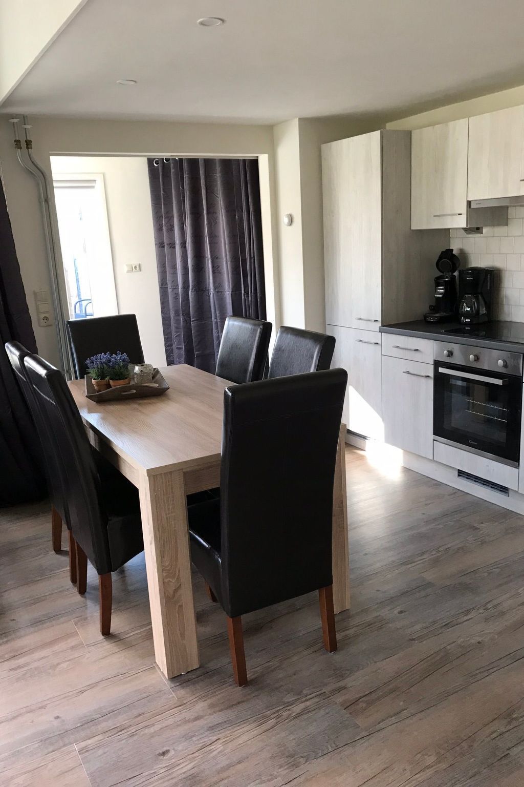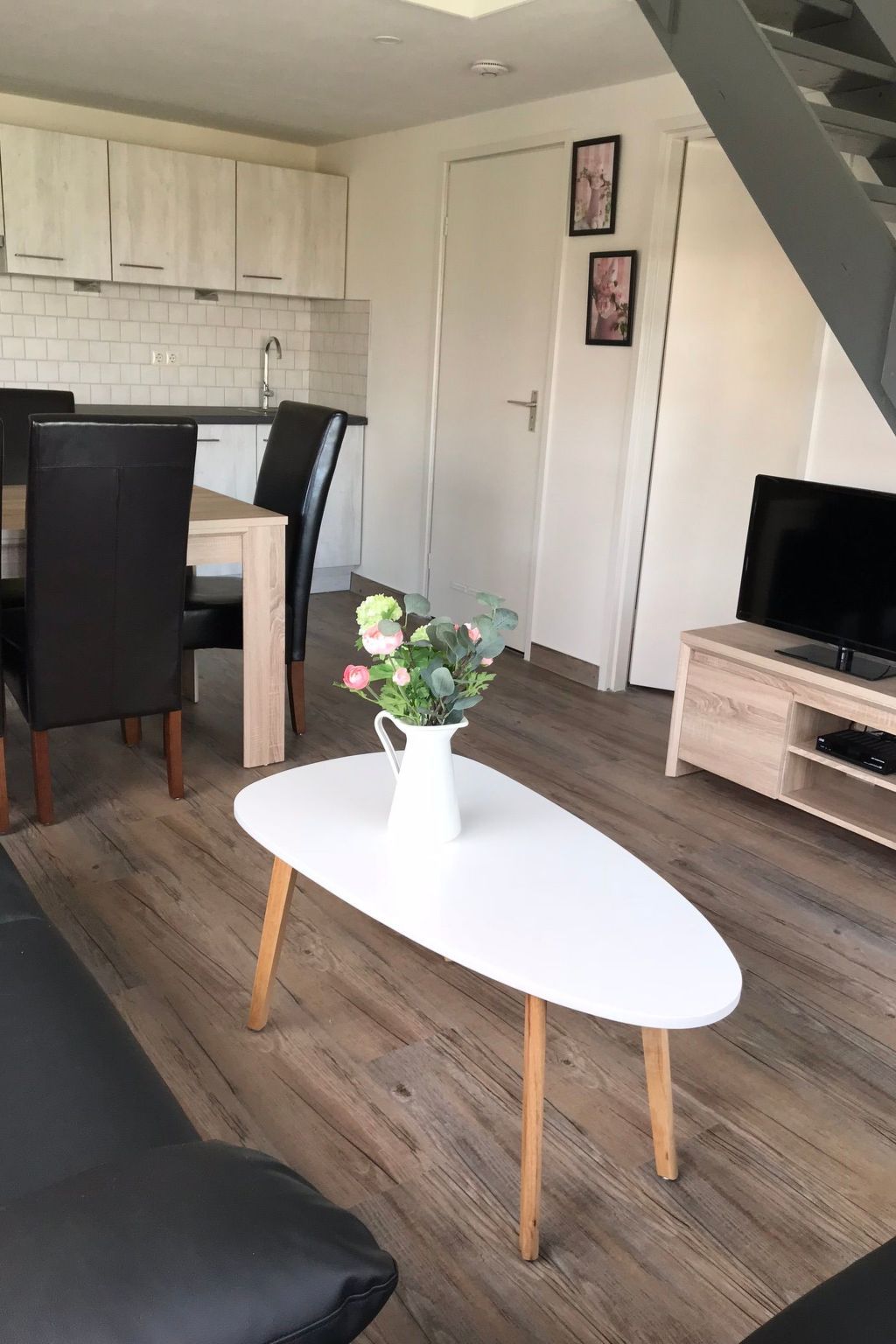 This holiday home is in a block of 4 houses. Upon entering, you stand in a small hallway. Here you will find the washing machine, drying rack and microwave. Then you enter the living area. Here you will find a completely new kitchen with a large fridge, a freezer, a dishwasher, an oven, an induction hob, a filter coffee maker, a Senseo coffee maker, a kettle, an egg boiler, a hand blender and a toaster. The kitchen is fully equipped. The cosy living area has a dining table with chairs. There is a lovely seating area. There is internet TV. Downstairs there is a super nice bathroom. Downstairs there is also a bedroom with a 140x200 bed. Upstairs there is a bedroom with two 90x200 beds. There is also a sleeping loft upstairs with a 140x200 bed. All beds have single duvets. A baby gate is attached at the top of the stairs. A high chair and a cot are also available. Wi-Fi is available throughout the house.