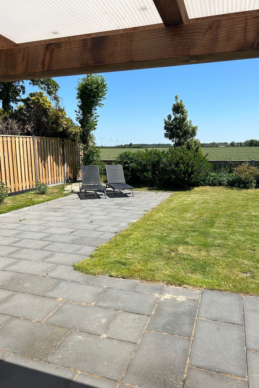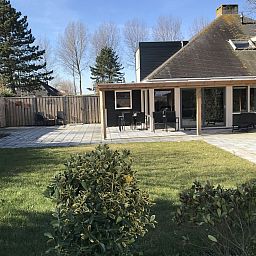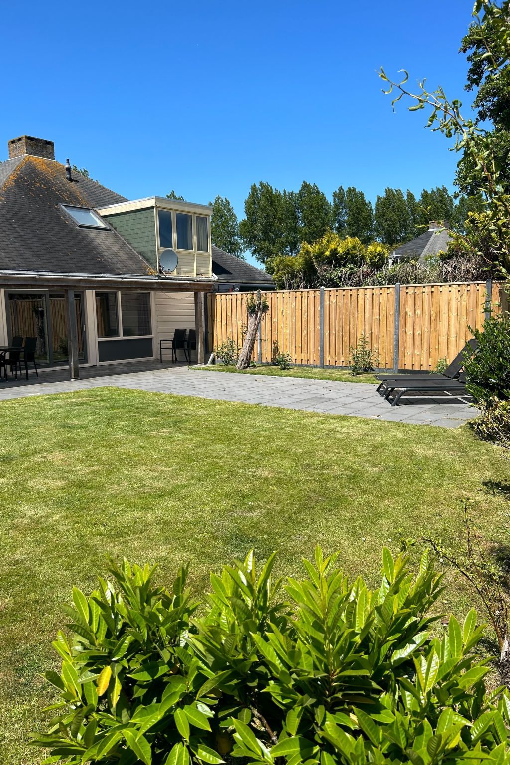 Around the house is a very nice veranda, so when the weather is drizzling you can still sit outside. There are sunbeds and plenty of seats in the garden. The garden is completely fenced, which is very pleasant with dogs or small children. The garden has great views over the meadows behind. The garden has sun all day, but there is also plenty of shade. There is a charcoal barbecue in the garden. The garden is very spacious.