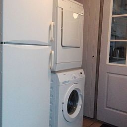 On the ground floor of this semi-detached house is one bedroom for two persons (double bed 140 cm x 200 cm), living room, kitchen, bathroom, conservatory and storage room. The kitchen is fully equipped including an oven, cooker, coffee maker, microwave, dishwasher, toaster and kettle. Take a seat at the oval dining table. The storage room contains a washing machine, dryer and fridge-freezer. The living room has a satellite TV and a sofa. There are two bedrooms upstairs. Both bedrooms have two single beds, each measuring 90 cm x 200 cm. One of the bedrooms has a television and a DVD player. One bedroom has no door. All beds have single duvets and pillows. The bathroom is equipped with a bath, shower, toilet and washbasin.