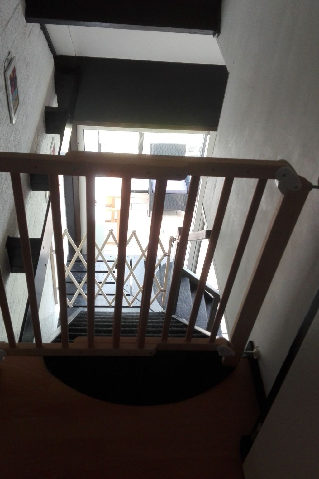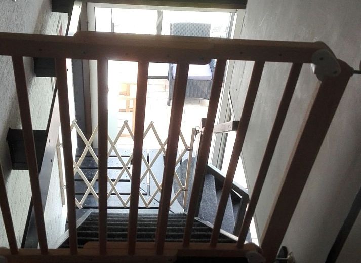 The holiday home has a downstairs bedroom with a 160 cm x 200 cm double bed, living room, open-plan kitchen, bathroom, conservatory and storage room. Upstairs are two double bedrooms. The second bedroom also has a cot. One of the bedrooms has a television and a DVD player. All beds have single duvets and pillows. The bathroom has a shower, bathtub, toilet and washbasin.