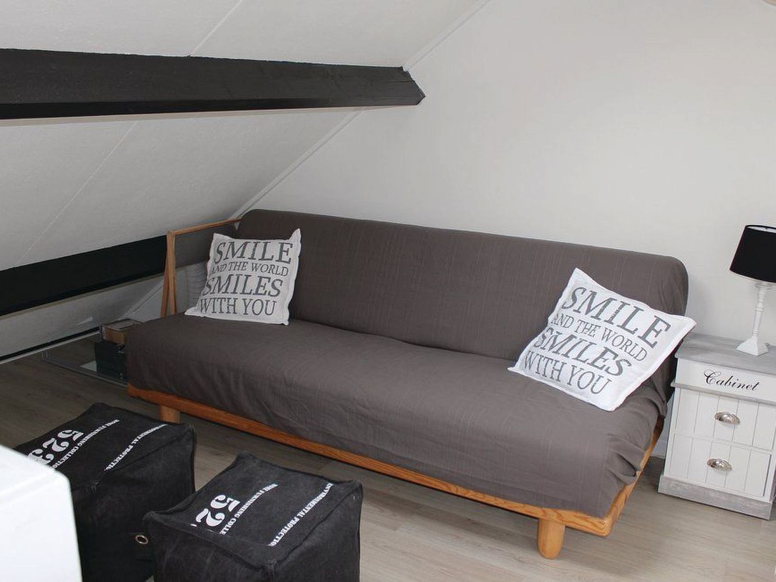 The ground floor, approx. 55 m², is divided into the following rooms: a living room with flat-screen TV (additional German and children's channels via satellite) and two double sofas; next to that, a bedroom with a double bed; a fully equipped kitchen with cooker, oven, microwave, coffee machine and dining area; and a bathroom with shower and washbasin and a separate toilet. Upstairs you will find a bedroom with a bunk bed and two single beds. There is also a loft upstairs with a sofa, two stools and a table, an ideal place for the kids to hang out. Each bedroom naturally has a storage cupboard. A cot and dining chair are also available in the house. Free internet (Wifi) in and around the house and at the restaurant/bar. Parking is about 75 metres from the house and a trolley is available to transport your belongings.