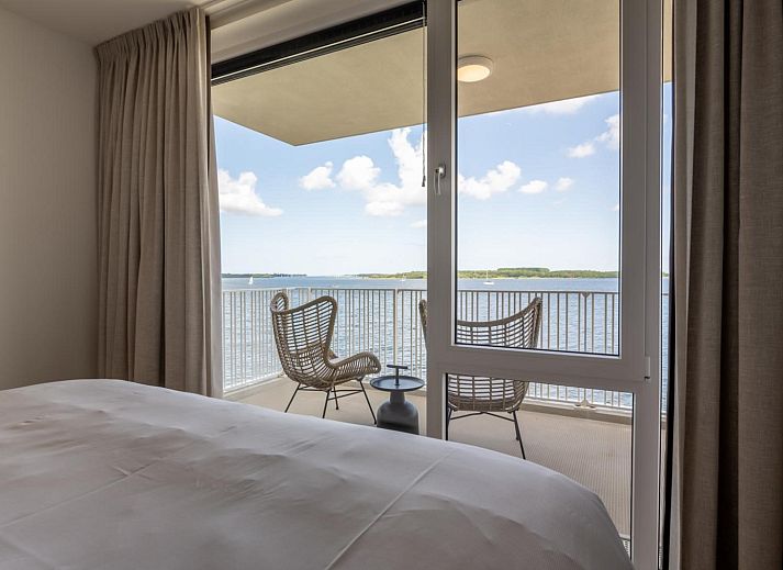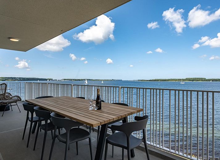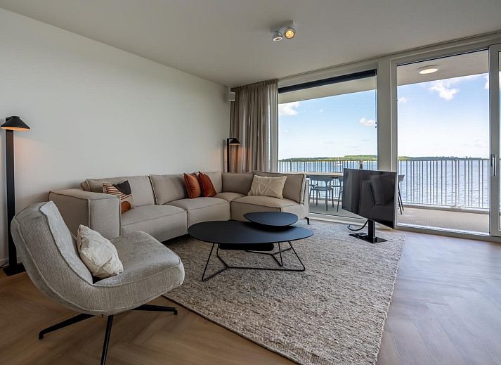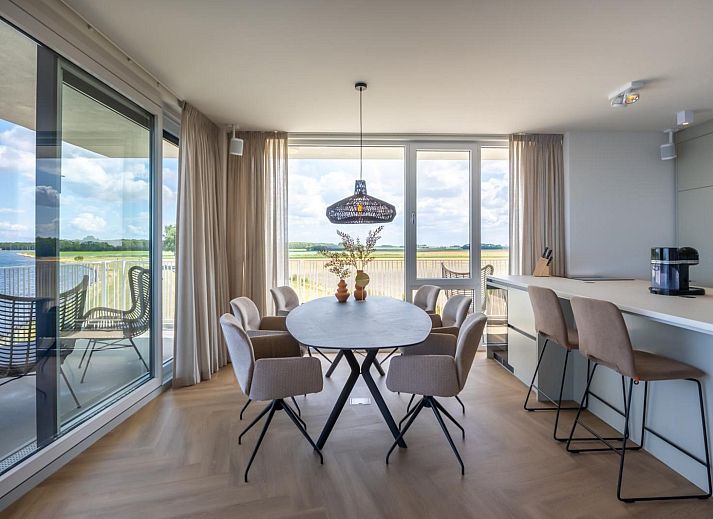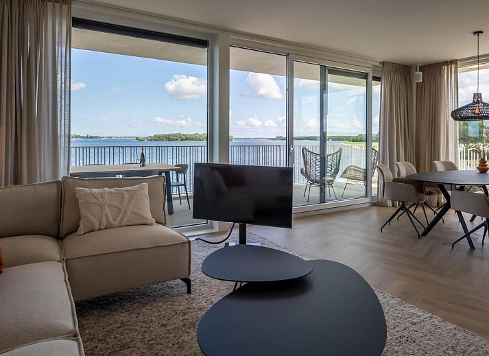 Le salon lumineux et accueillant dispose d'un coin salon confortable et d'une télévision Smart TV avec bouquet étranger. Depuis le salon, vous pouvez accéder au spacieux balcon avec une table à manger pour 8 personnes. Ici, vous pouvez profiter d'une vue à couper le souffle sur le vaste Veerse Meer tout au long de la journée. Les bateaux passent ici jusqu'aux petites heures du matin, pendant que vous dégustez un verre de vin.