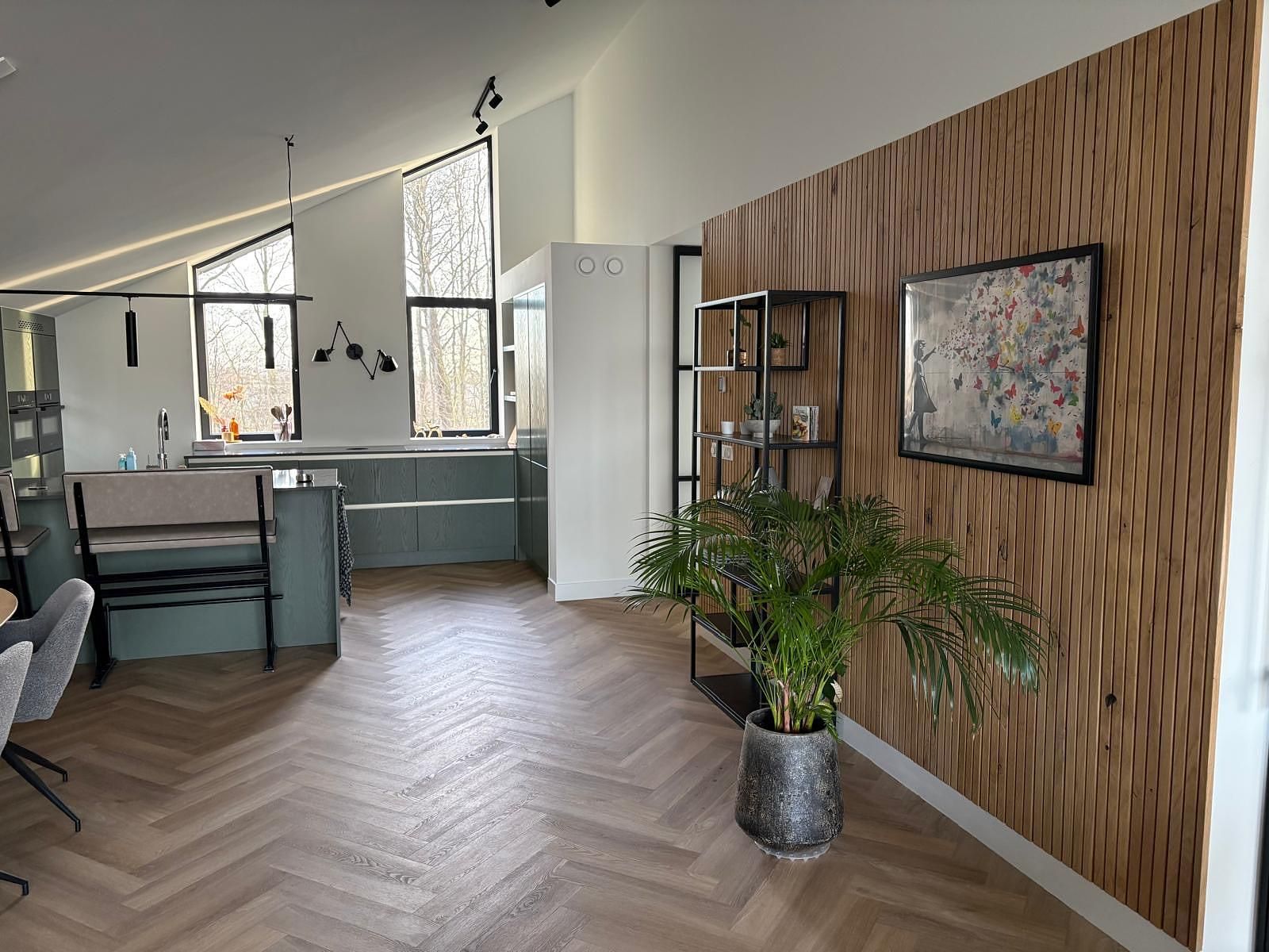 La cuisine luxueuse et confortable est équipée de tout le confort moderne. Elle comprend notamment un double réfrigérateur avec congélateur et un double four combiné micro-ondes. Elle dispose également d'une plaque à induction avec hotte intégrée et d'un lave-vaisselle. Pour les amateurs de café et de thé, il y a une machine à café à grains, une machine à café Nespresso et un Quooker.