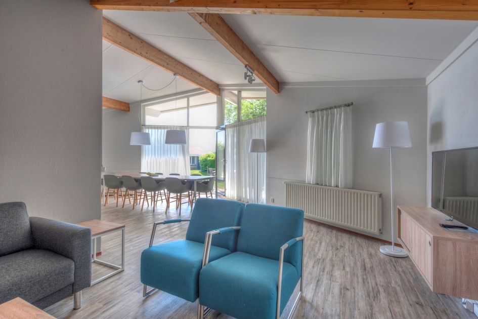 Bungalow de plain-pied pour 10 personnes. Dans ce bungalow, vous trouverez une salle de séjour confortable avec un coin salon et une télévision intelligente. La cuisine ouverte est équipée d'un lave-vaisselle, d'un réfrigérateur avec compartiment congélateur interne, d'un four à micro-ondes combiné et d'une cafetière à filtre. Le bungalow dispose de 5 chambres à coucher avec 2 lits simples à ressorts. Il y a également 2 salles de bains avec douche à l'italienne et 2 toilettes séparées dans le hall. À l'extérieur, vous trouverez un jardin avec une terrasse meublée et un local de rangement. Dans le bungalow, vous pouvez utiliser gratuitement le wifi. Près de la maison se trouvent 2 places de parking ; les voitures supplémentaires peuvent être garées gratuitement dans le parking situé en face du Service Point.