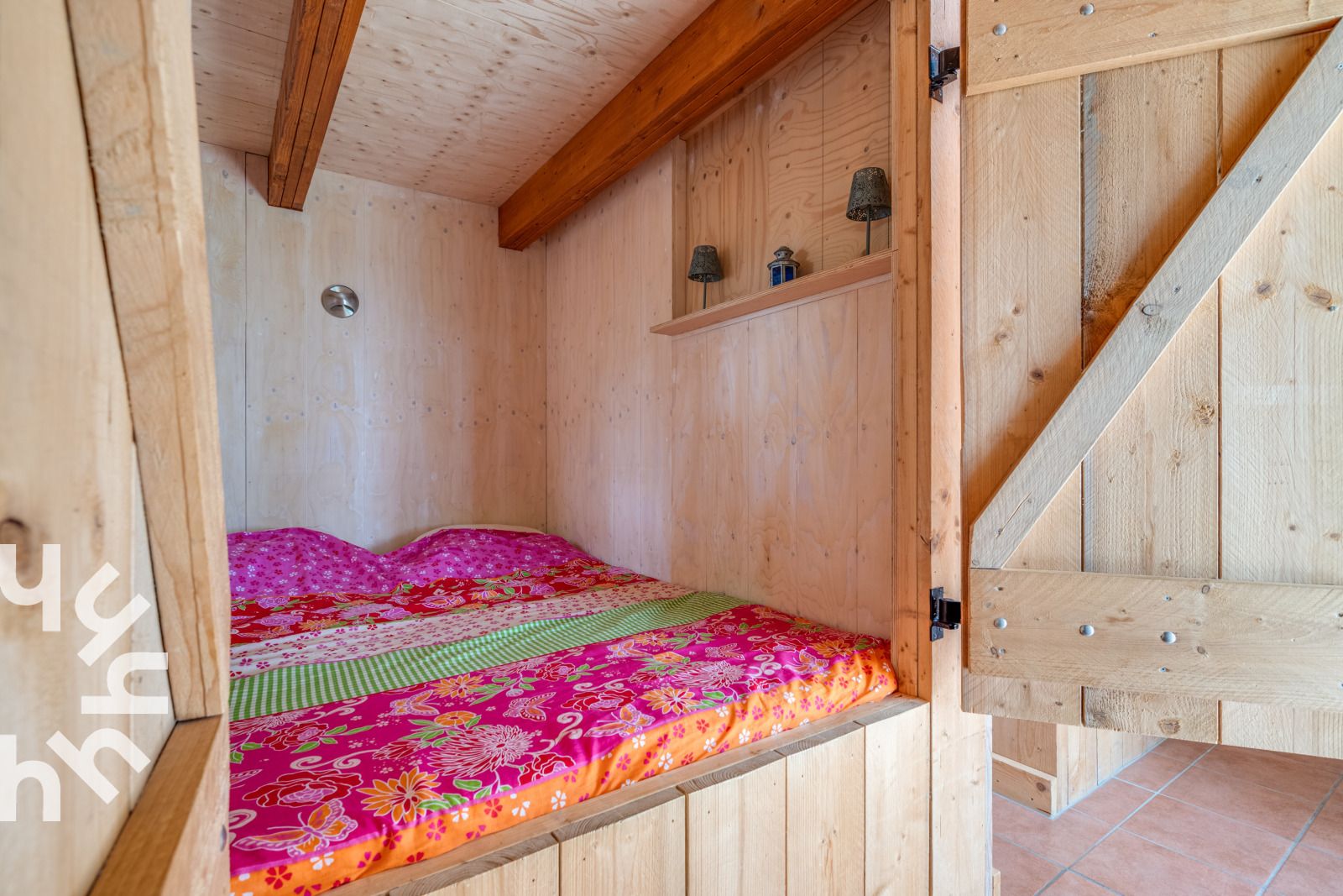Cette maison de vacances confortable est équipée pour quatre personnes et a une superficie de 50m2. Le salon dispose d'une table à manger avec quatre chaises et d'un coin salon avec télévision, lecteur CD et DVD. Les portes-fenêtres donnent sur le jardin. La cuisine ouverte comprend une plaque de cuisson à induction, un lave-vaisselle, une bouilloire, une machine à café Dolce Gusto, un réfrigérateur-congélateur et un four à micro-ondes. Vous dormez dans des coussins de couchage, au rez-de-chaussée il y a un lit double et un lit simple. Un escalier raide mène à un autre petit lit à une place. Tous les matelas font 80x200cm et sont équipés d'une couette simple. La salle de bains est au rez-de-chaussée et moderne avec douche, lavabo et toilettes. A l'extérieur, vous disposez d'un jardin spacieux avec une table de pique-nique et des meubles de jardin. Le jardin est clôturé et le chemin d'accès peut être fermé par une planche.