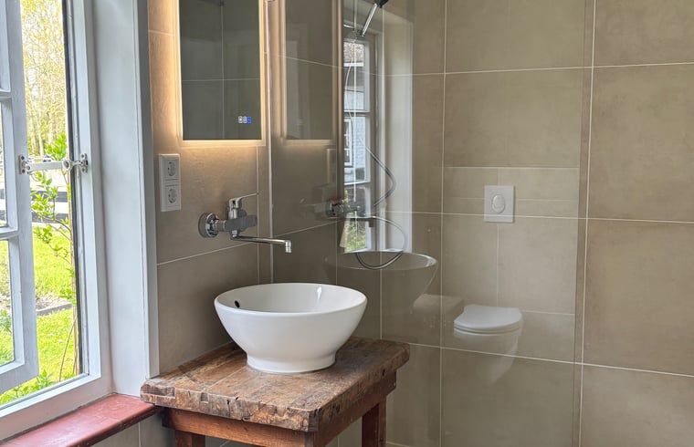 La maison de ferme est située dans la partie originale de la ferme. Elle a été construite au printemps 2025, elle est donc encore toute neuve ! Vous y trouverez une chambre spacieuse avec un lit double, une salle de bains avec une douche à l'italienne et un salon confortable avec une kitchenette. Il y a un canapé-lit dans le salon, de sorte qu'une troisième personne peut également y séjourner confortablement. Cerise sur le gâteau, cette maison dispose d'une belle terrasse abritée orientée au sud.