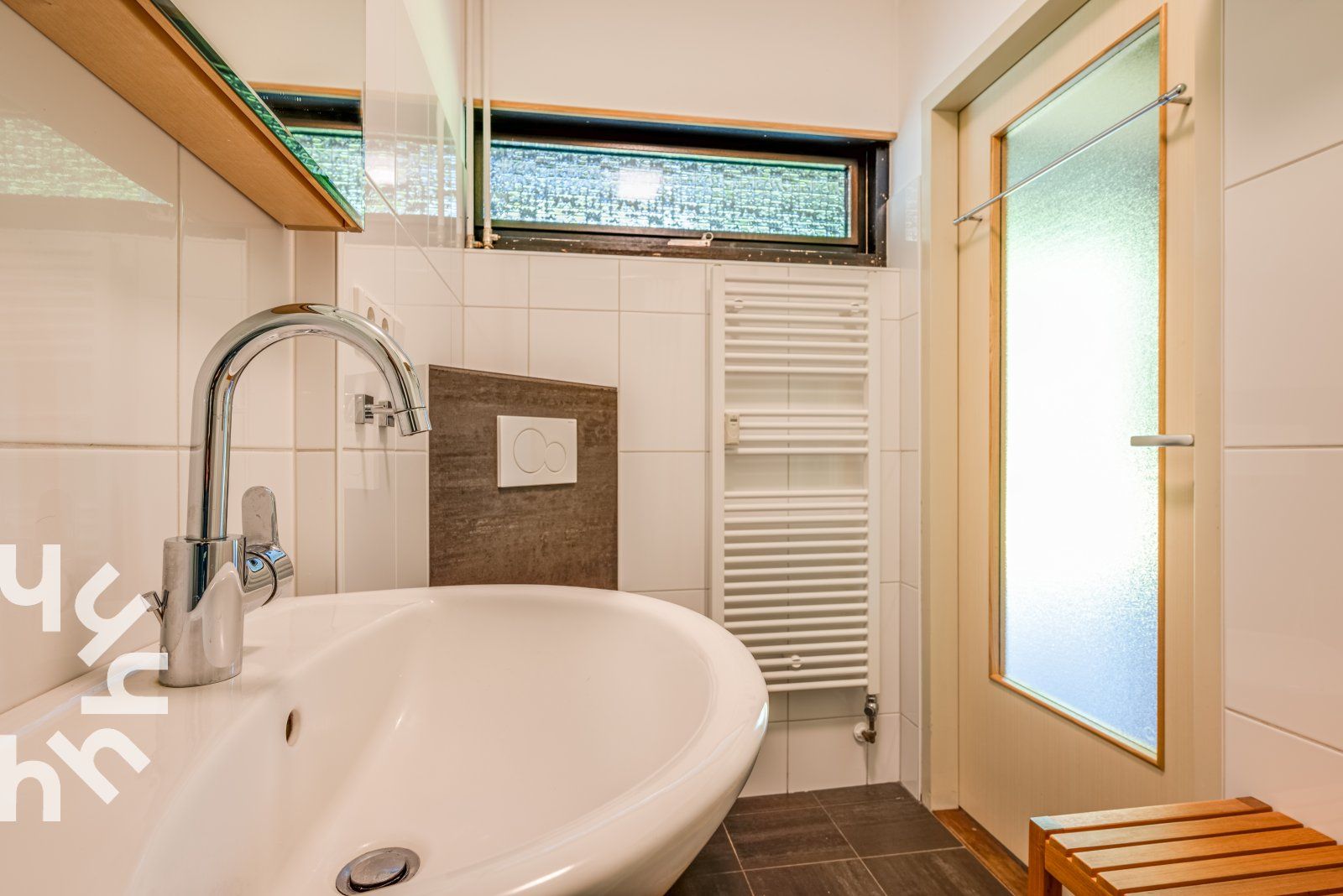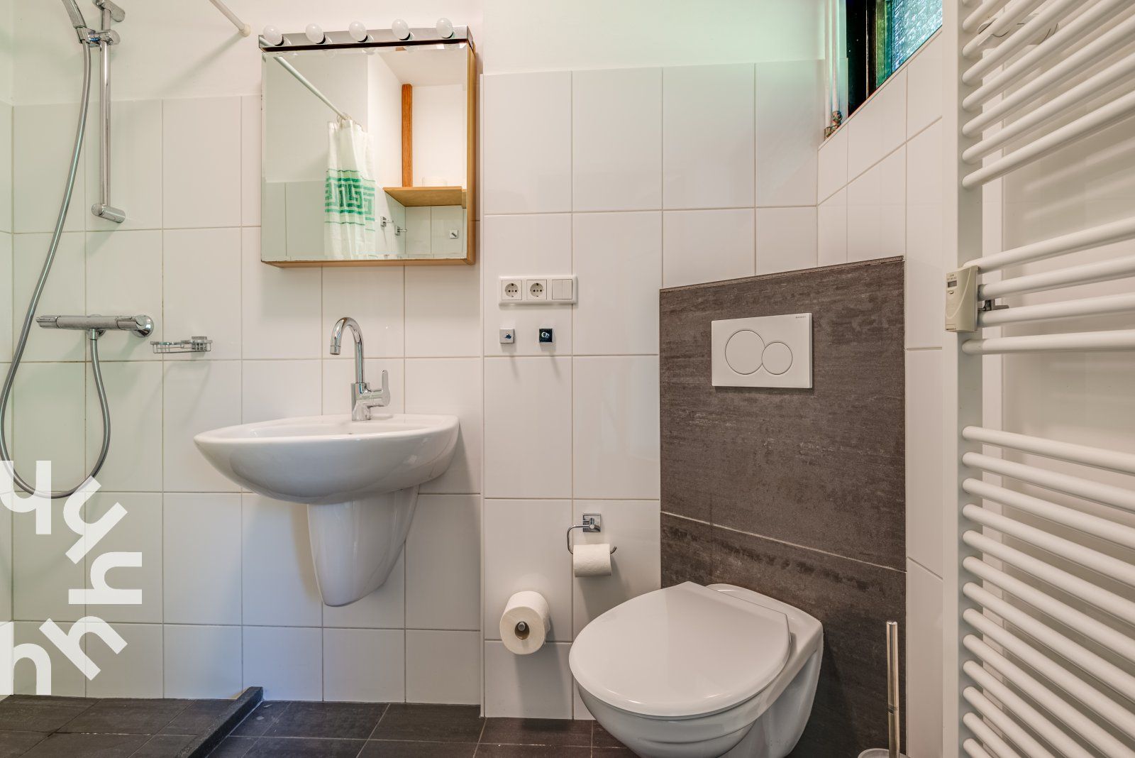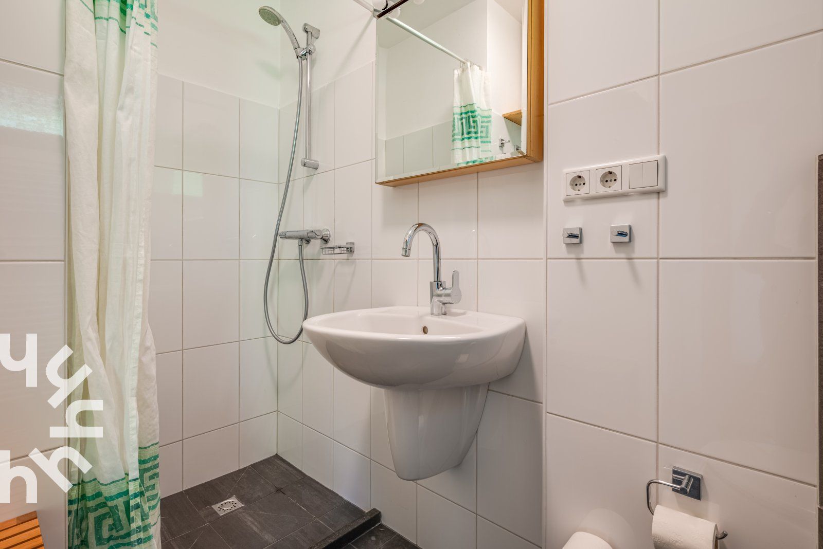 Vous entrez dans le hall et traversez la cuisine ouverte pour arriver dans le salon. Le salon dispose d'un canapé, de deux chaises et d'une table à manger avec quatre chaises. La cuisine est équipée d'un réfrigérateur, d'un congélateur à trois tiroirs, d'un lave-vaisselle, d'une plaque de cuisson à induction avec hotte intégrée, d'un four à micro-ondes combiné et d'une cafetière à filtre. La chambre à coucher dispose de deux lits simples. La salle de bains soignée est équipée d'une douche, d'un radiateur sèche-serviettes, d'un lavabo et de toilettes. Il y a une place de parking privée. Autour du complexe d'appartements se trouve un jardin commun que vous pouvez utiliser.
