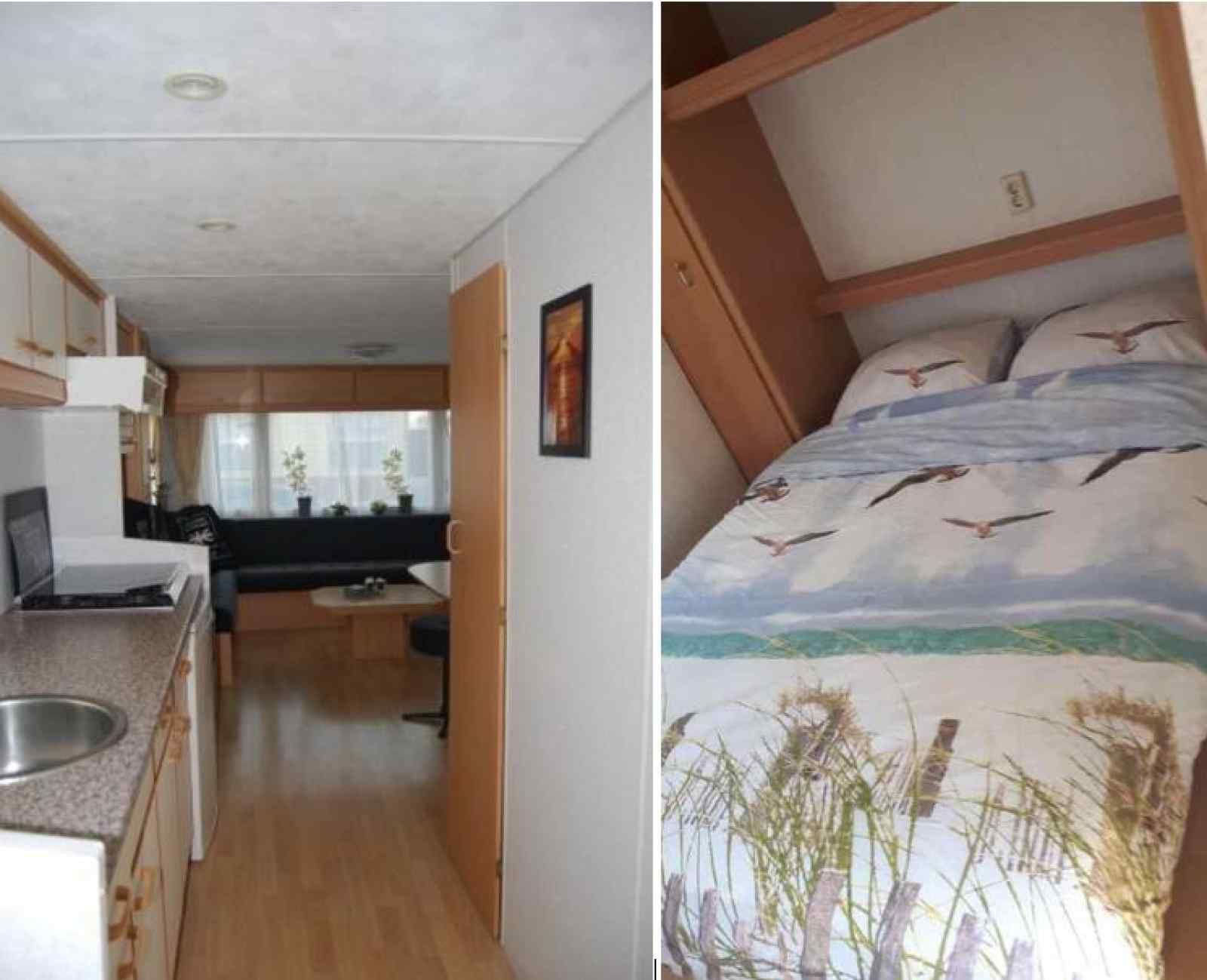 La salle de séjour comprend un coin salon, un coin repas, une télévision, un lecteur DVD, des jeux et des livres. La cuisine comprend une cuisinière à quatre feux, un micro-ondes, une cafetière Senseo, un réfrigérateur, un congélateur et une bouilloire.Il y a deux chambres à coucher, la première avec un lit double, la seconde avec deux lits simples.La salle de bains est équipée d'une douche, d'un lavabo et de toilettes. A l'extérieur, il y a un jardin non clôturé avec une terrasse meublée et un parking privé.