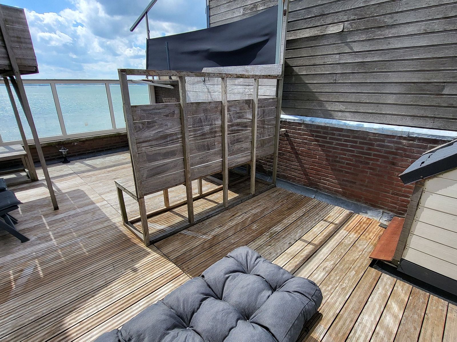 The outdoor space is equally impressive with several places to enjoy the outdoors: a sunny balcony on the second floor and a spacious, securely screened roof terrace of no less than 40 square metres facing south, offering spectacular views over the sea and the old town. These spaces invite sunbathing or admiring the passing ships, while enjoying a drink or socialising.