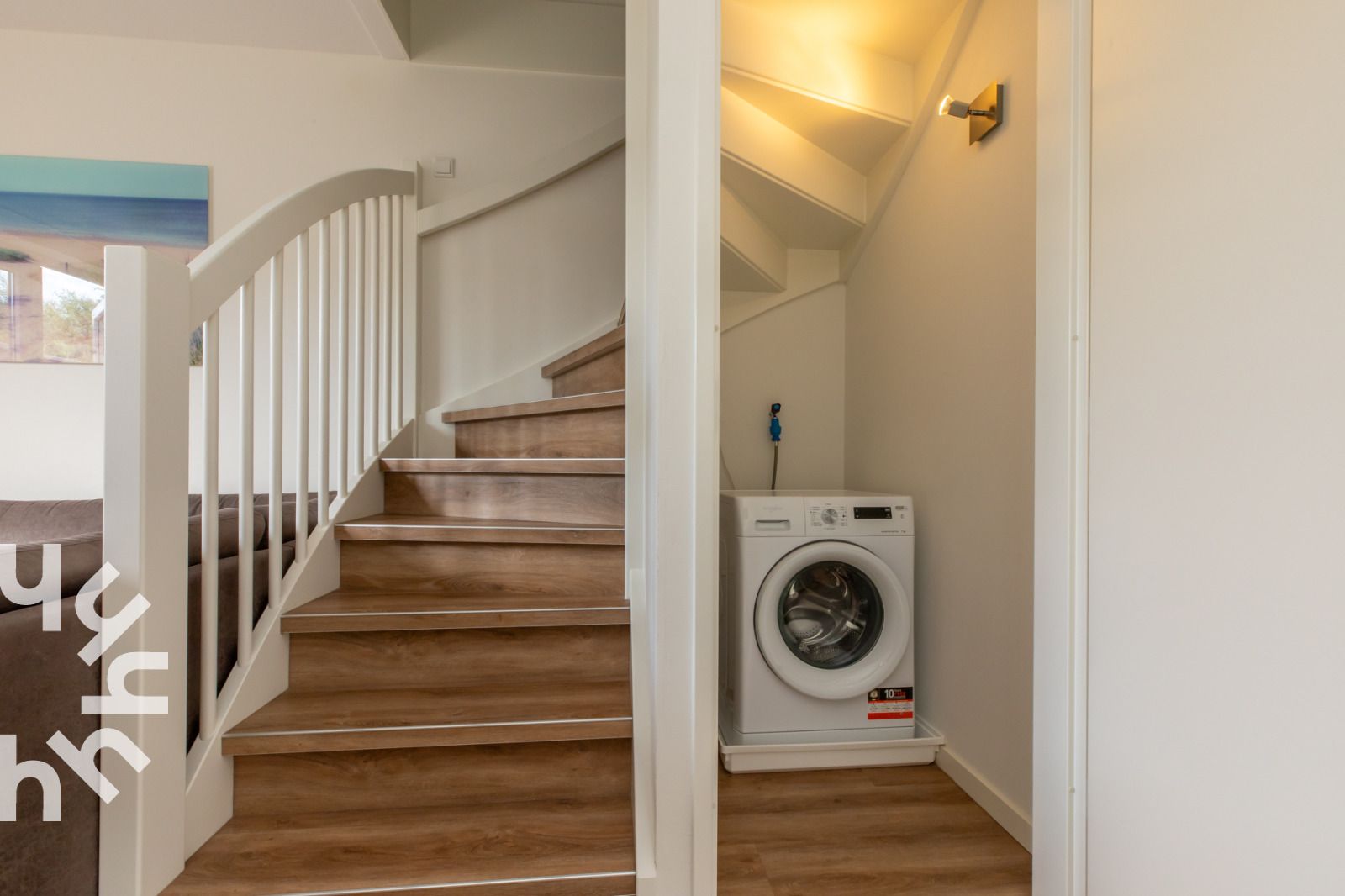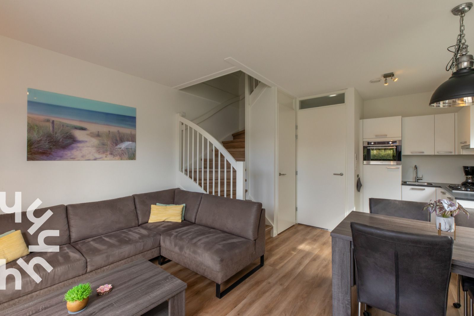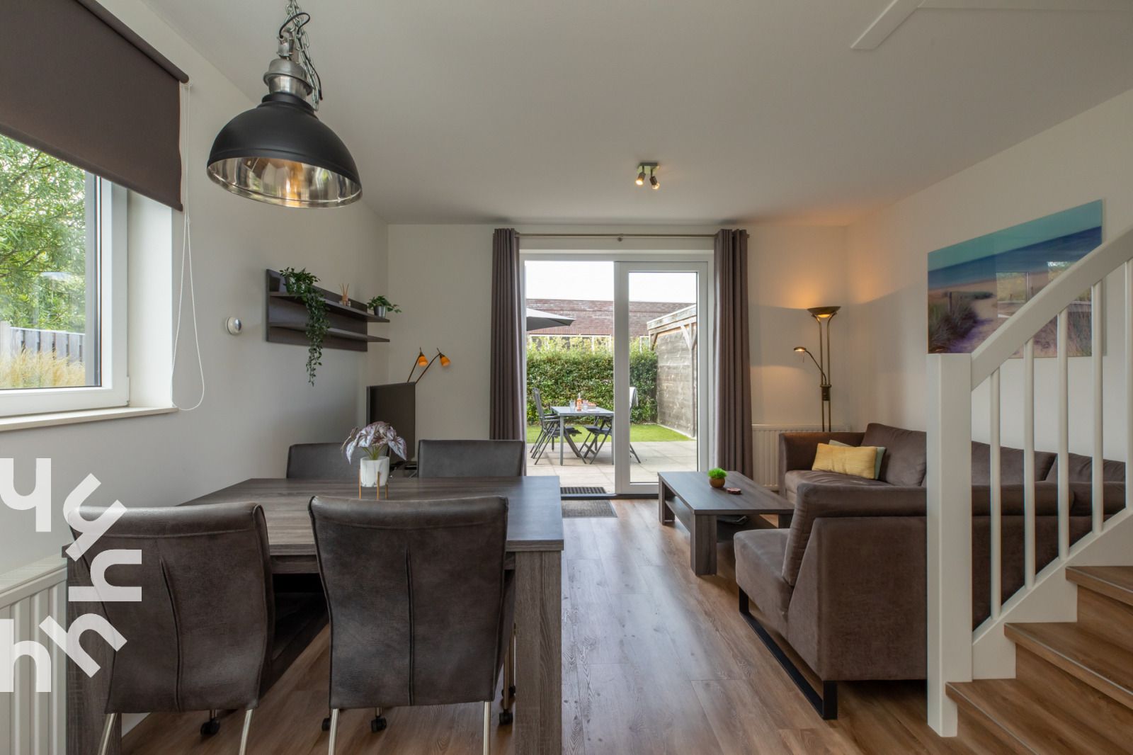 En entrant, vous trouverez un salon spacieux avec un canapé d'angle et une télévision avec des chaînes internationales. La table à manger avec quatre chaises offre beaucoup d'espace pour manger ou jouer. La cuisine ouverte est entièrement équipée : cuisinière à gaz, lave-vaisselle, réfrigérateur avec compartiment congélateur, four à micro-ondes, cafetière à filtre, cafetière Senseo, bouilloire et grille-pain. Le rez-de-chaussée comprend également un débarras avec lave-linge et aspirateur, une salle de bains avec une grande douche à l'italienne et un grand lavabo, ainsi que des toilettes séparées. À l'étage, il y a deux chambres : l'une avec un lit double, une armoire et des tables de chevet. La deuxième chambre est équipée de deux lits simples, de tiroirs et de tables de chevet. Vous pouvez facilement vous mettre au lit car les lits sont déjà faits. Il y a également des toilettes séparées à l'étage. Sur la terrasse, vous pouvez profiter du soleil presque toute la journée en toute intimité. Les vélos peuvent être rangés et rechargés en toute sécurité dans l'abri.