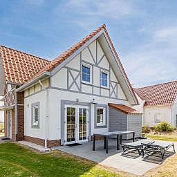 Cette villa indépendante peut accueillir 8 personnes. Le hall d'entrée donne accès au salon lumineux avec chauffage au sol et portes-fenêtres donnant sur la terrasse. Il y a une cuisine entièrement équipée avec lave-vaisselle, micro-ondes et réfrigérateur/congélateur, des toilettes au rez-de-chaussée, un débarras, ainsi qu'une chambre à coucher avec salle de bains attenante. À l'étage, vous trouverez trois chambres, une salle de bains avec douche et sauna infrarouge et des toilettes séparées. Si vous apportez vos vélos en vacances, vous pouvez les ranger dans le local de rangement extérieur. L'accès au wifi est gratuit.