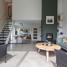 À l'intérieur, vous trouverez une maison de vacances agréablement décorée avec plusieurs coins salon, idéale pour passer des soirées conviviales ou des moments de détente avec un bon livre. Le salon dispose de deux coins salon séparés, l'un près de la télévision avec un canapé d'angle confortable et une table basse, et l'autre avec un grand canapé et deux fauteuils, tous offrant une vue magnifique sur le jardin grâce aux grandes fenêtres. La cuisine, cœur de la maison, est entièrement équipée avec une plaque de cuisson, un four à micro-ondes combiné, un lave-vaisselle et un réfrigérateur, ainsi qu'une machine à café Nespresso et une bouilloire pour vos pauses café ou thé. La salle à manger spacieuse peut accueillir six personnes et donne sur le jardin par une grande baie vitrée.
