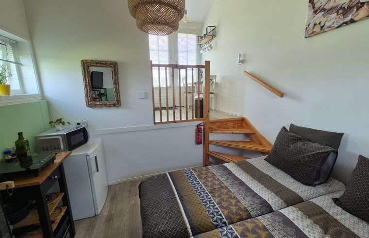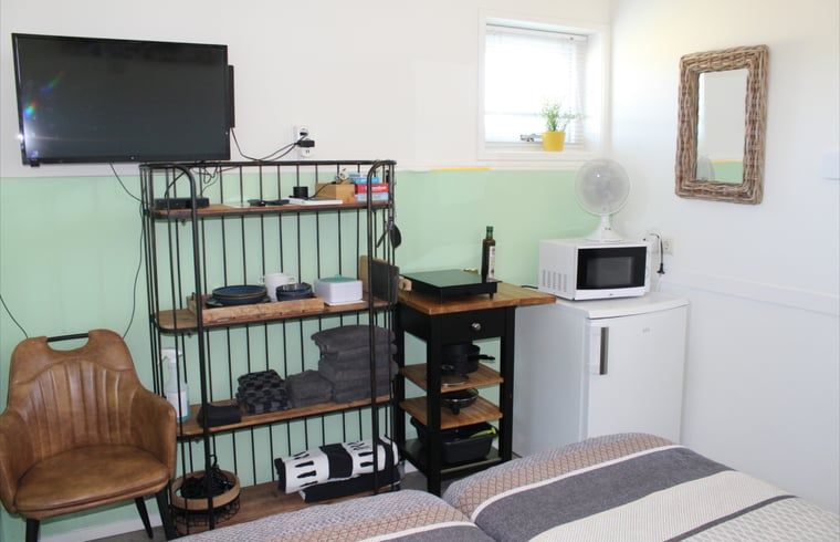 Vous pouvez vous promener et vous asseoir librement autour de la propriété et du moulin. Sur le terrain (4 000 m2) situé derrière les cottages, des personnes handicapées viennent également en semaine pour leurs activités de jour. Elles s'occupent du jardin et des animaux. Le gîte est entièrement équipé : douche/toilette, TV, plaque de cuisson à induction (1 brûleur), micro-ondes, combiné réfrigérateur/congélateur, Senseo, bouilloire. À l'extérieur, vous trouverez également un kamado pour le barbecue et deux chaises de jardin avec des coussins. Devant le cottage se trouvent également deux chaises de jardin et une table. Nous fournissons également le linge de lit, les serviettes de toilette, les torchons et les serviettes de plage.