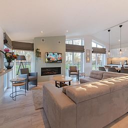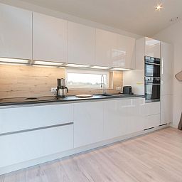 Moderne et luxueusement meublée : hall d'entrée avec WC et douche séparés. Salon avec fauteuils confortables et écran plat. Salle à manger avec table design. Cuisine ouverte (four, lave-vaisselle, 4 plaques à induction, grille-pain, bouilloire, micro-ondes, congélateur, machine à café électrique et machine Nespresso). 2 chambres à coucher, chacune avec 2 lits de 80cm de large et ouvrant sur la terrasse. Chauffage dans toutes les pièces et la salle de bain.