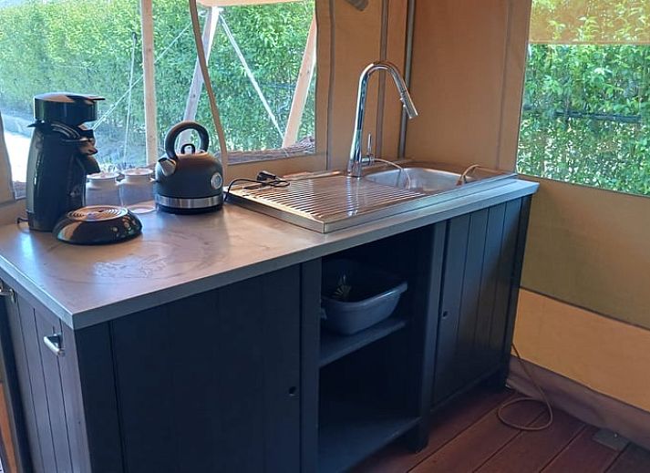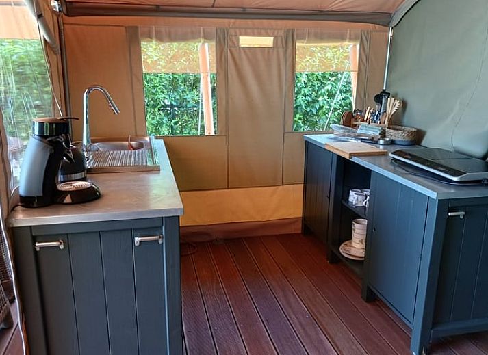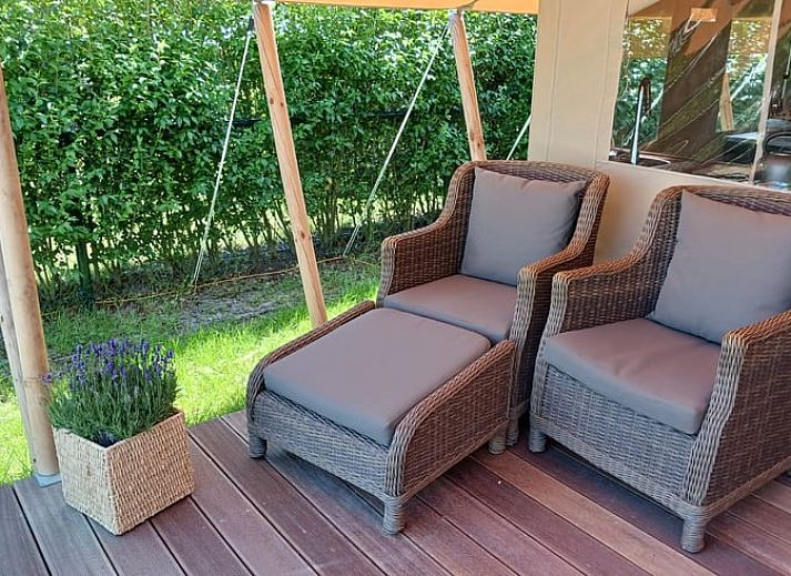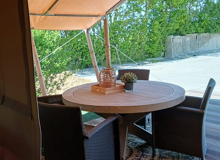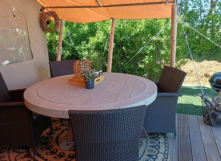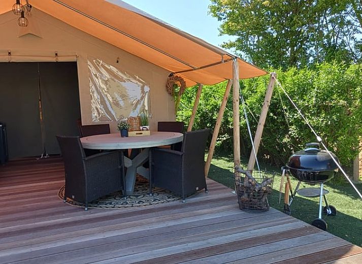 Dans un endroit rustique près du lac Veere, cette confortable tente safari pour un maximum de 5 personnes est située au milieu du polder, à côté de la cour de ferme des propriétaires.