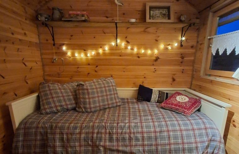 Petite maison avec vue sur les terres arables. Salle de bain privée ...en bas de l'escalier. Le pipowagen se trouve au fond de mon jardin et est entièrement équipé. Lit fait. Café et thé. Possibilité de petit déjeuner en libre service