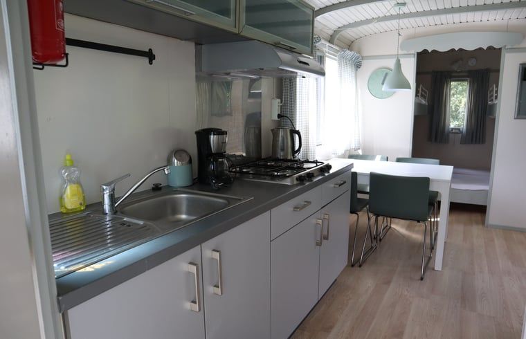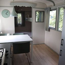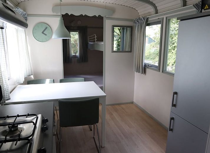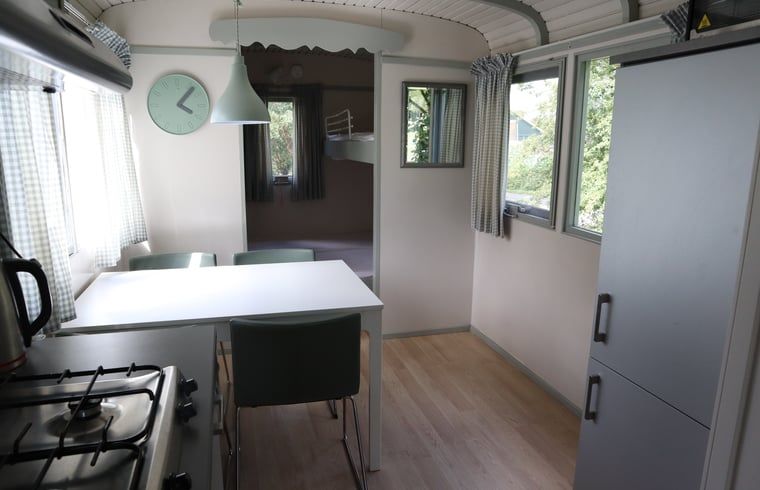 Ce gîte naturel est un grand camping-car comparable à une caravane. Il dispose d'une kitchenette, d'une toilette, d'une table avec 4 chaises, d'une chambre à coucher avec un lit double et un autre lit de chaque côté. Il se trouve à l'arrière du terrain de notre mini-camping de 29 emplacements. Au milieu du polder avec des prés et des fossés. Depuis la balustrade, vous avez une vue imprenable sur le polder et vous pouvez admirer le coucher de soleil. Un endroit agréable pour se détendre et se relaxer.