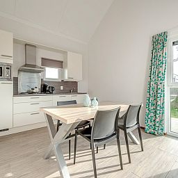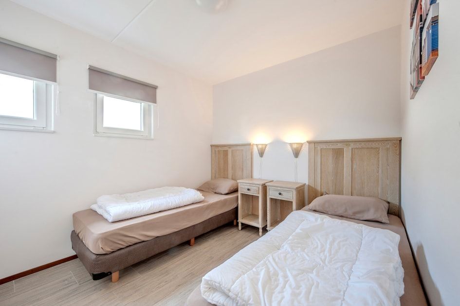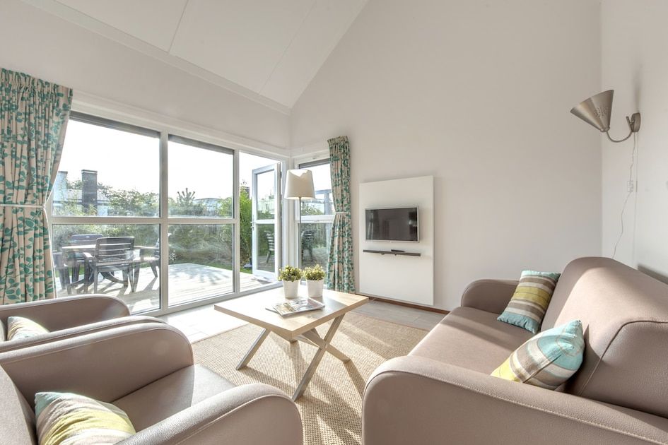 Ce bungalow indépendant peut accueillir 4 personnes. L'ensemble du bungalow est équipé d'un chauffage par le sol, d'une télévision intelligente dans le salon et d'un lave-vaisselle et d'une machine à café dans la cuisine. Il y a également 2 chambres à coucher, toutes avec 2 lits simples à sommier. L'une d'entre elles dispose d'une télévision. Il y a également 2 salles de bains, 1 avec baignoire et 1 avec douche. Il y a des toilettes séparées dans le hall. La villa est également équipée d'une terrasse meublée, d'une place de parking pour une voiture et vous pouvez utiliser le wifi gratuitement. Ce type de villa peut également être réservé en version luxe. Cette version est équipée d'un four à micro-ondes, de 2 chaises longues, d'une télévision dans la chambre, d'un lave-linge et d'un sèche-linge et d'un salon dans le jardin. Pour cette version, cochez 'luxe' dans vos préférences.