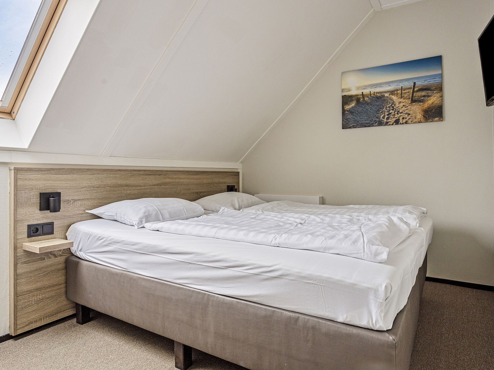 Op de verdieping vindt u twee ruime slaapkamers en twee badkamers. Één badkamer is uitgerust met een ligbad en een wastafel. De andere is voorzien van een inloopdouche en een wastafel tevens heeft u hieruit toegang tot de sauna, wat uw verblijf nog comfortabeler maakt.