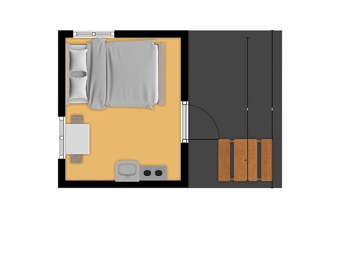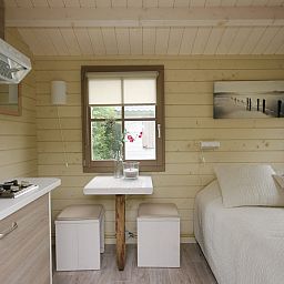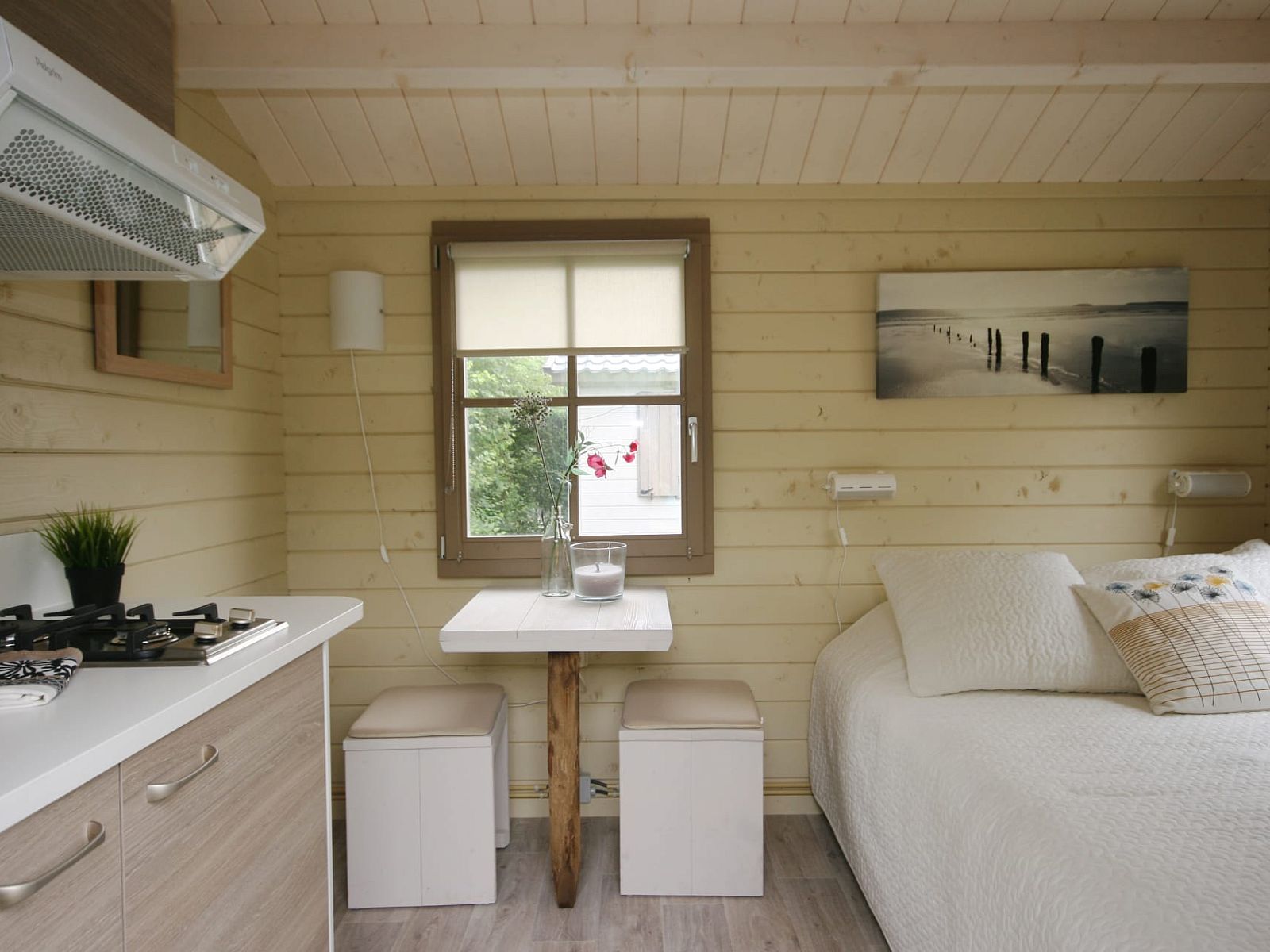 Un chalet de camping confortable pour deux personnes. Compact mais complet. Idéal pour une ou deux nuits ou pour de vraies vacances en camping. La simplicité du camping et le confort d'un chalet ! Idéal pour des vacances à vélo ou à la plage.