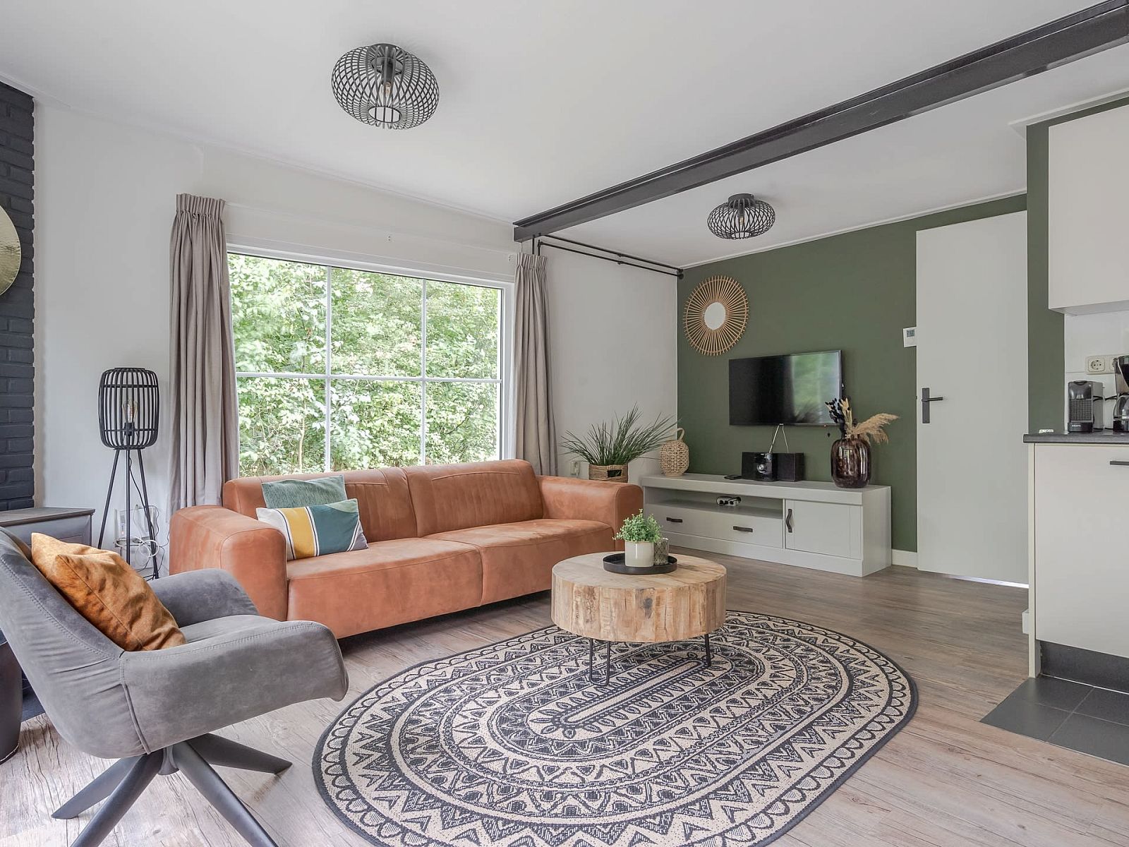 Le salon dispose d'un coin salon confortable. Pour plus de confort et de chaleur, vous pouvez allumer le poêle à bois, mais il y a aussi le chauffage central. Il y a une radio/lecteur CD avec fonction DVD. Vous pouvez également écouter de la musique à partir de votre téléphone grâce à la fonction USB.