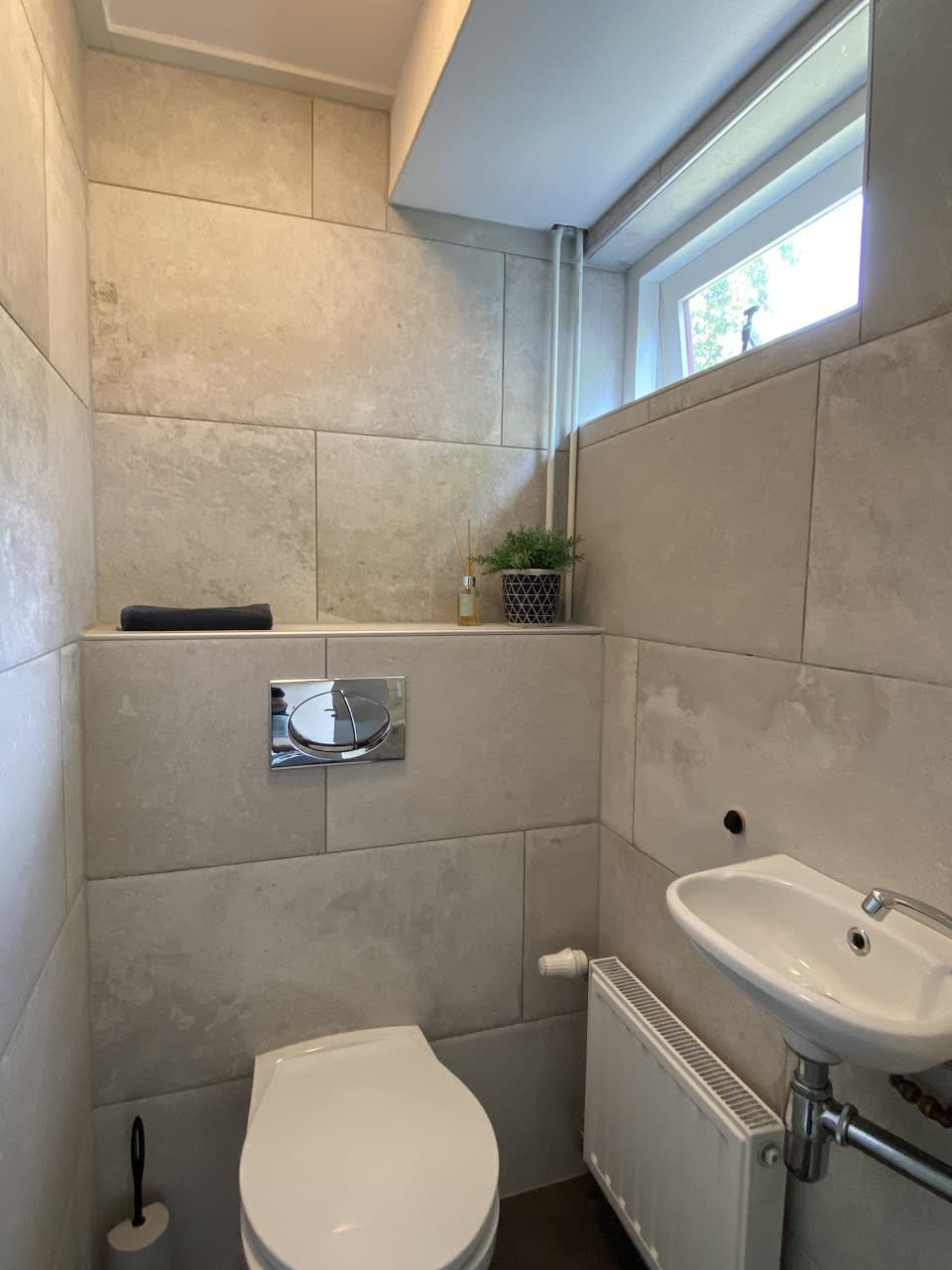 Il y a une salle de douche et des toilettes séparées.