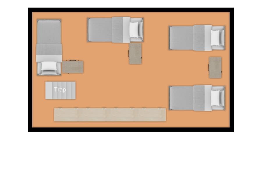 Au rez-de-chaussée, vous trouverez une chambre avec un lit double, une chambre avec des lits superposés pour les enfants jusqu'à 12 ans et dans le grenier il y a 4 lits simples.