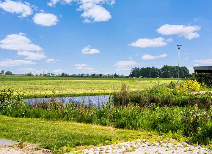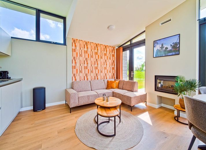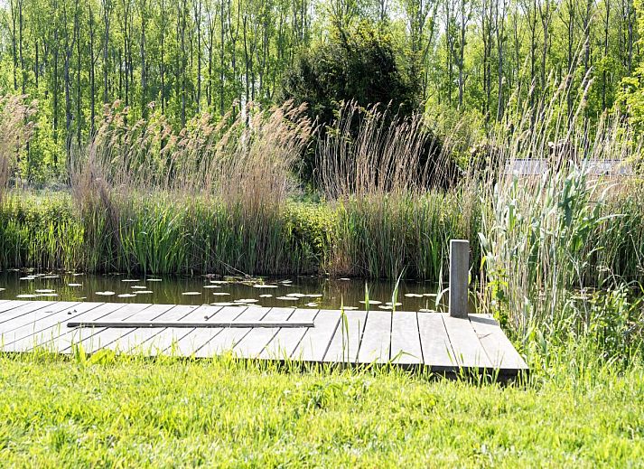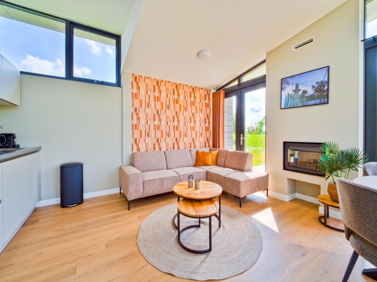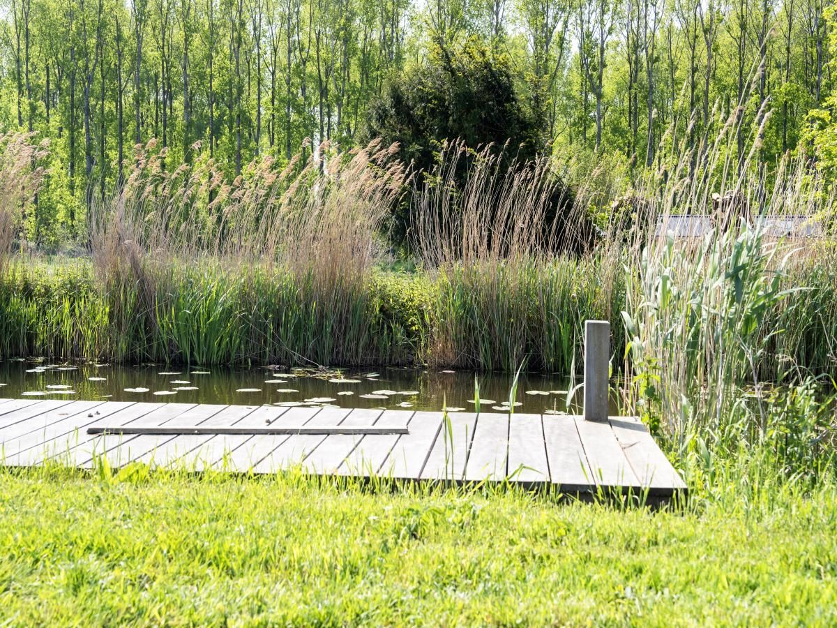 Ce cottage contemporain offre calme et nature. De grandes fenêtres illuminent l’espace et dévoilent les roseaux et l’eau. Les tons chauds, le salon cosy et la cheminée décorative créent une ambiance accueillante. À l’extérieur, la terrasse en bois et la pelouse au bord de l’eau invitent à des soirées paisibles avec vue sur les prairies et les Kaagplassen