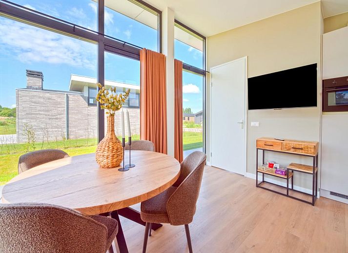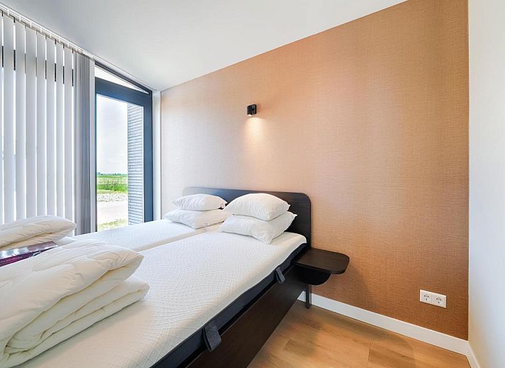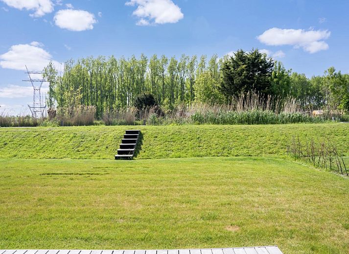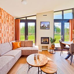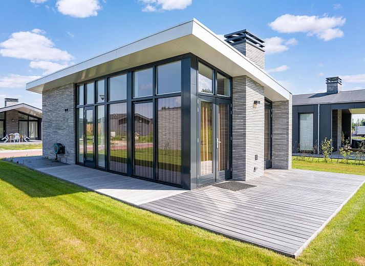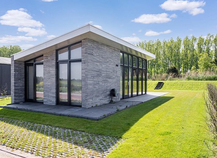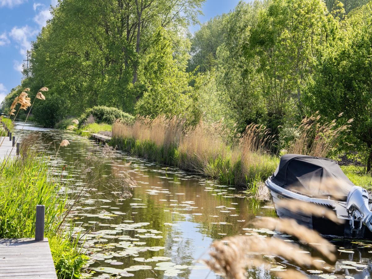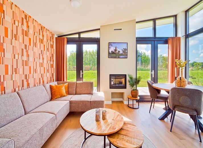 Ce cottage contemporain offre calme et nature. De grandes fenêtres illuminent l’espace et dévoilent les roseaux et l’eau. Les tons chauds, le salon cosy et la cheminée décorative créent une ambiance accueillante. À l’extérieur, la terrasse en bois et la pelouse au bord de l’eau invitent à des soirées paisibles avec vue sur les prairies et les Kaagplassen