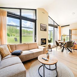 Ce cottage contemporain offre calme et nature. De grandes fenêtres illuminent l’espace et dévoilent les roseaux et l’eau. Les tons chauds, le salon cosy et la cheminée décorative créent une ambiance accueillante. À l’extérieur, la terrasse en bois et la pelouse au bord de l’eau invitent à des soirées paisibles avec vue sur les prairies et les Kaagplassen
