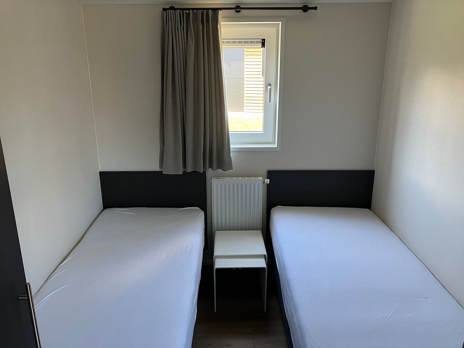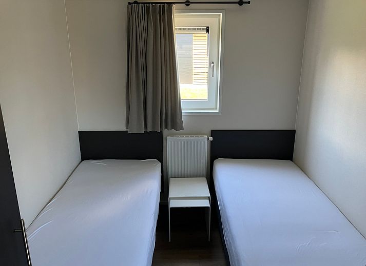 De woning beschikt over drie slaapkamers. De hoofdslaapkamer is voorzien van een tweepersoonsbed en opbergruimte. De tweede slaapkamer heeft twee eenpersoonsbedden, ideaal voor kinderen of gasten. De derde slapkamer beschikt over een nieuw stapelbed. De tweede en derde slaapkamer zijn voorzien van inbouwkasten.