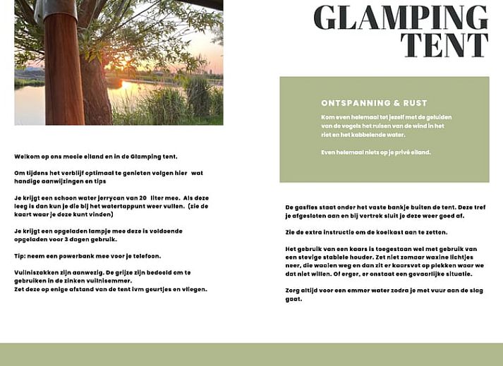 Le bateau à rames vous emmènera à travers la magnifique réserve naturelle 'De Lansing' jusqu'à l'île où se trouve la tente Glamping.